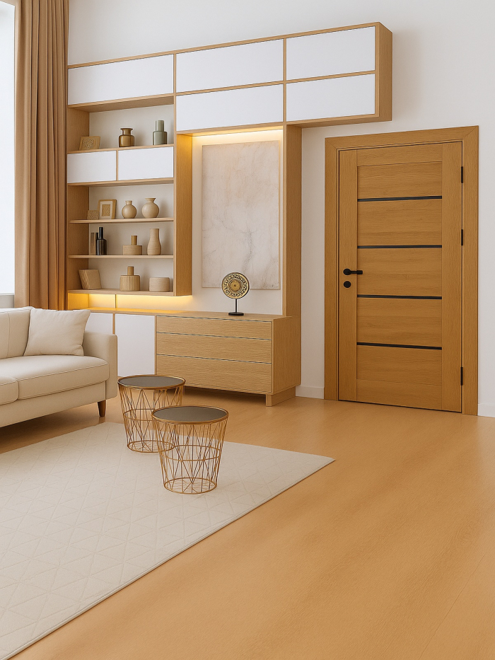 Този модел интериорна врата, е изработена от Висококачествени 6мм. HDF плоскости, а структурата на рамката е изградена от масивна иглолистна дървесина.